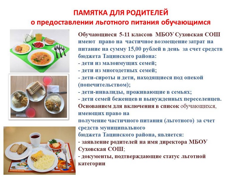 На получение частичного питания (льготного) в виде горячего завтрака за счет средств бюджета Тацинского района имеют право обучающиеся 5-9 классов образовательных организаций следующих категорий: