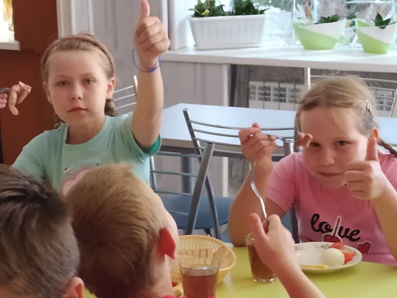 После разминки мы, наконец, проснулись, а так же проснулся наш аппетит. Нас ждал вкусный , замечательный завтрак.