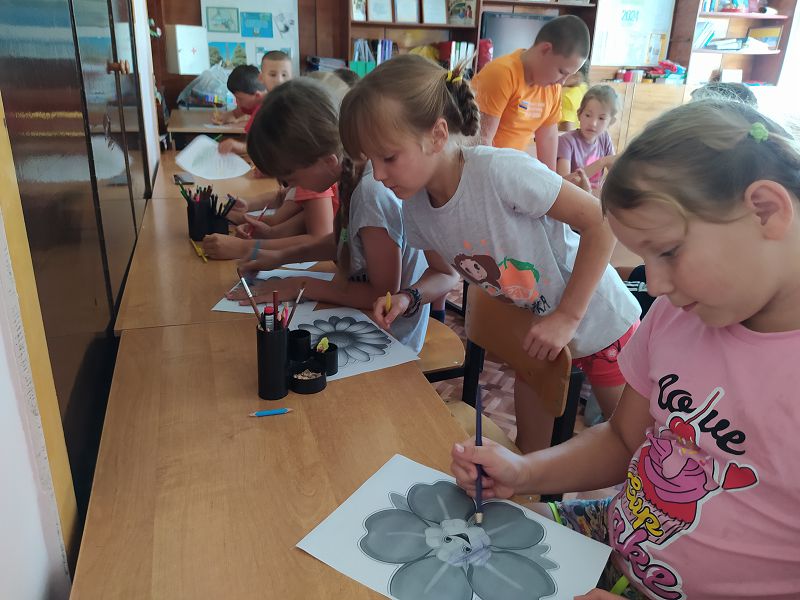 Завершился день. Ребята рисовали цветы и создали картину «Цветы, окружающие нас».