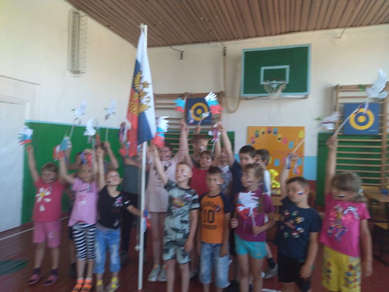 11 июня в при школьном лагере " Лучики солнца" проводились мероприятия, посвящённые Дню России. С утра торжественно под гимн России был поднят российский флаг, украсили школьные окна Российской символикой, звучали песни о России. Потом для воспитанников лагеря проводился конкурс рисунков на асфальте, просмотрели презентацию "Россия- наш дом родной".В завершении сегодняшнего дня ребята показали флешмоб.