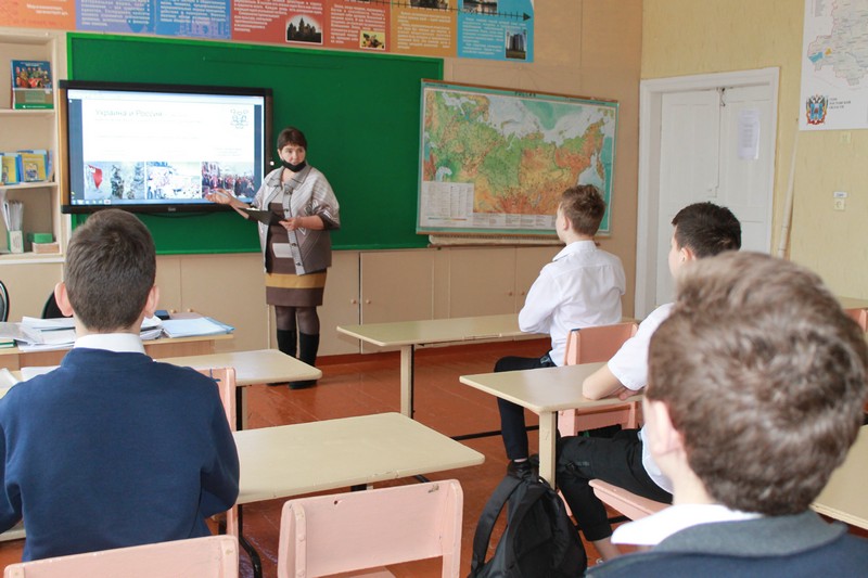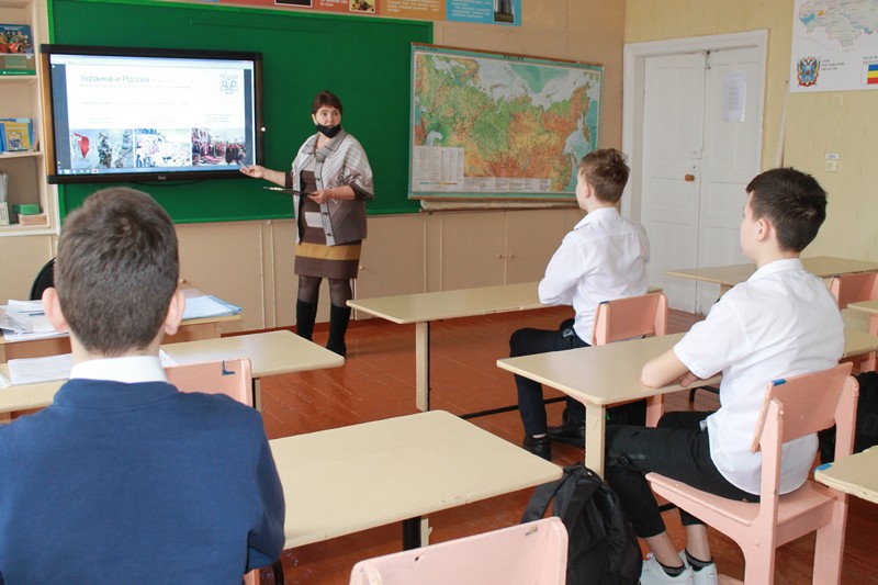 Учащиеся совершили экскурс в историю России и Украины, обсудили сегодняшнюю ситуацию в части проведения Вооруженными силами России специальной миротворческой операции по защите Донецкой и Луганской народных Республик.
