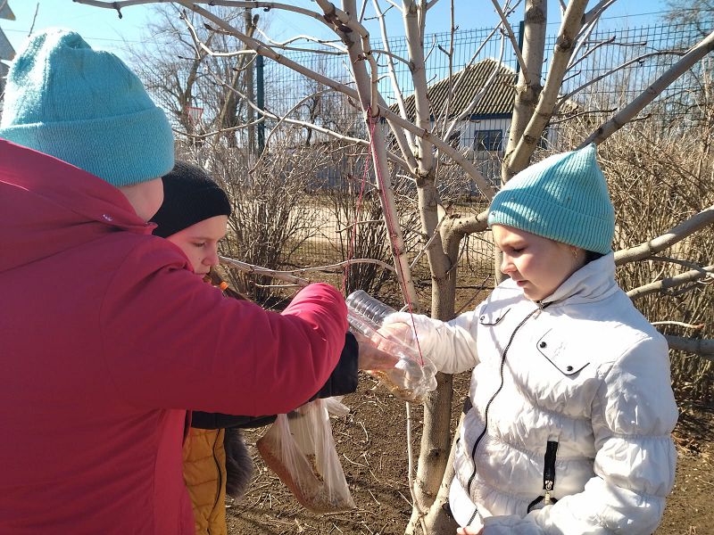 Сегодня учащиеся младших классов подготовили новое доступное жильё для пернатых гостей школьного двора.