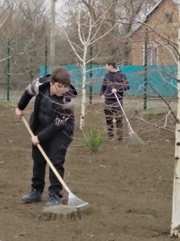 И сегодня, 1 апреля, учащиеся 5-9 класса вышли на субботник: убрали остатки прошлогодней листвы, вынесли мусор.