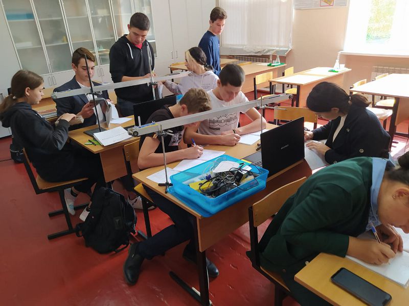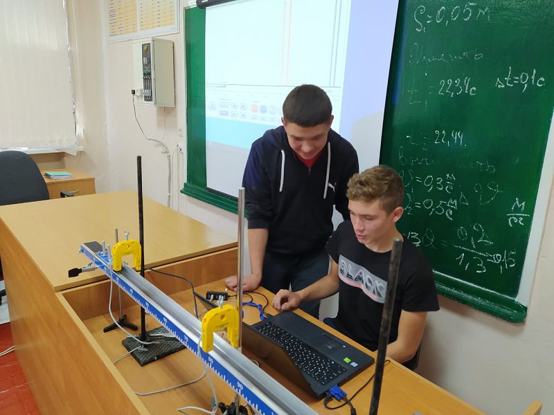 В 9 классе учащиеся школы приступили к изучению раздела МЕХАНИКА при использовании оборудования электронной лаборатории. Познакомились со скоростью равномерного движения и определением мгновенной скорости неравномерного движения. Учащиеся 9 класса научились определять ускорение тела измеряя параметры движения оптоэлектронными датчиками. Впереди новые знания и открытия.