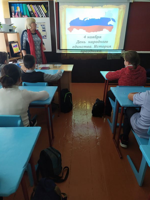В первый день начала второй четверти учащиеся 5 и 7 класса узнали о истории возникновения праздника народного единения. Презентацией праздника послужила работа ученицы 9 класса Луговского филиала Холодовой А.