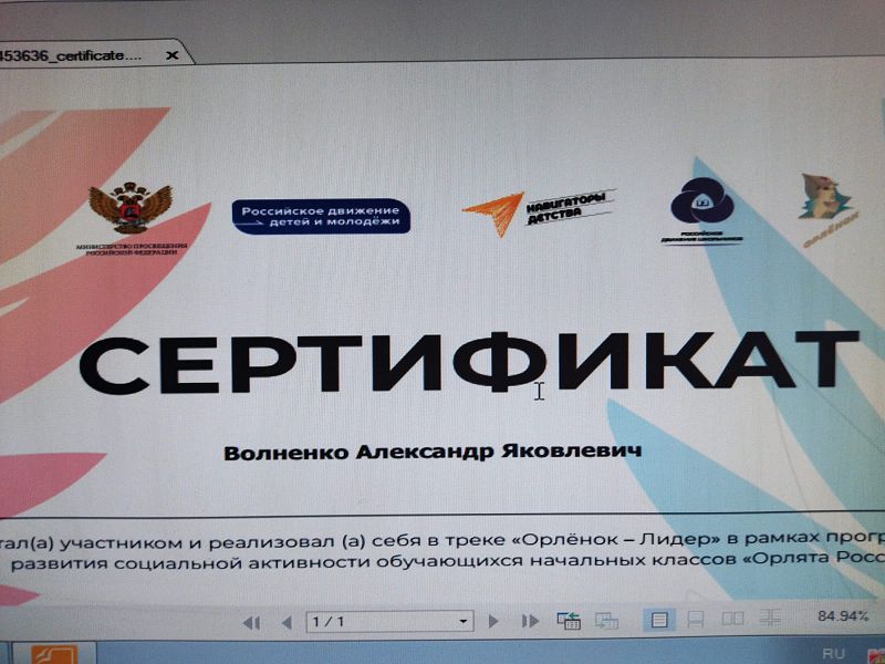 4 класс в этом учебном году участвует в реализации программы "Орлята России", уже выполняют второе задание (трек) " Орленок-эрудит", первый трек назывался " Орленок - лидер", ребята получили сертификаты участников.