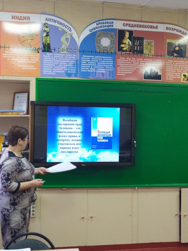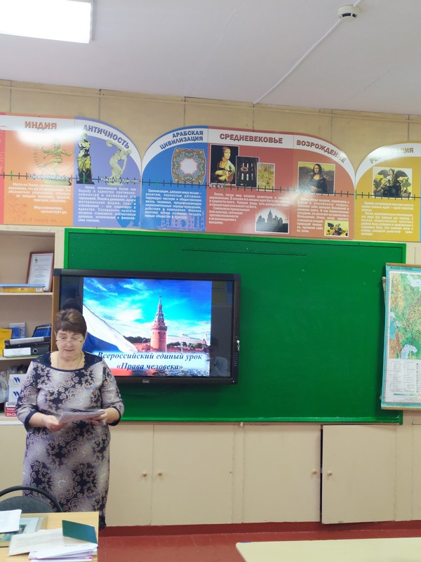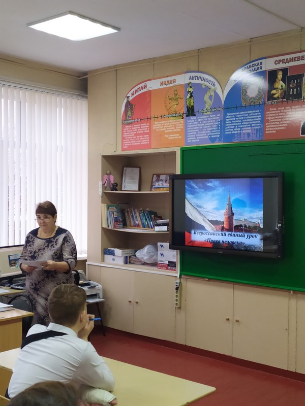 Урок был проведен в форме лекции в ходе которой учащиеся рассмотрели основные положения Конституции Российской Федерации, Всеобщей декларации прав человека и других международных и национальных нормативных актов в сфере прав человека; ознакомились с существующей системой защиты прав человека, с институтом Уполномоченного по правам человека в Российской Федерации и уполномоченных по правам человека в субъектах Российской Федерации.