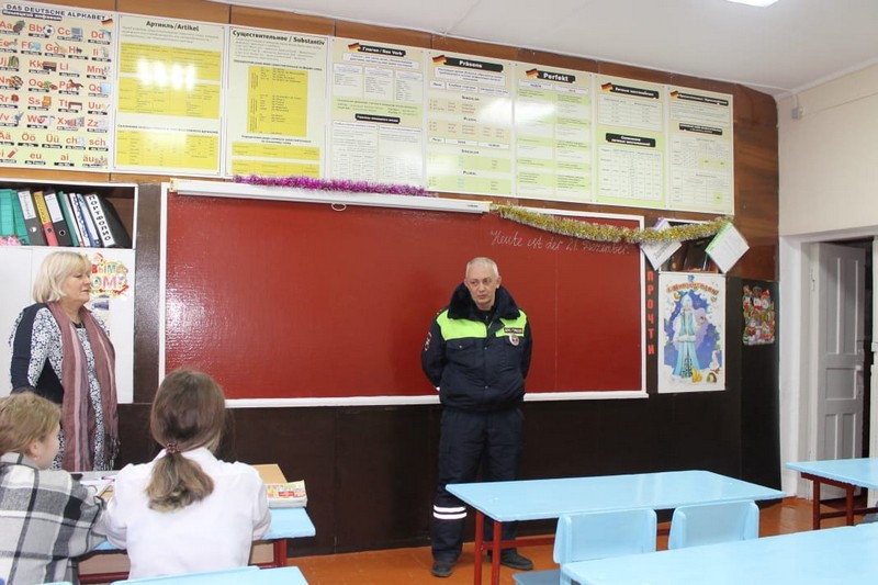 Госавтоинспектор вновь напомнил детям основные правила поведения на дороге в зимний период, объяснили, как правильно переходить проезжую часть по пешеходному переходу, что автомобиль является источником повышенной опасности, и в зимний период тормозной путь автотранспортных средств увеличивается в несколько раз. Также, при неблагоприятных погодных условиях, сокращенном световом дне, чтобы избежать аварий на дороге и обезопасить свою жизнь, всем пешеходам крайне важно использовать световозвращающие приспособления.