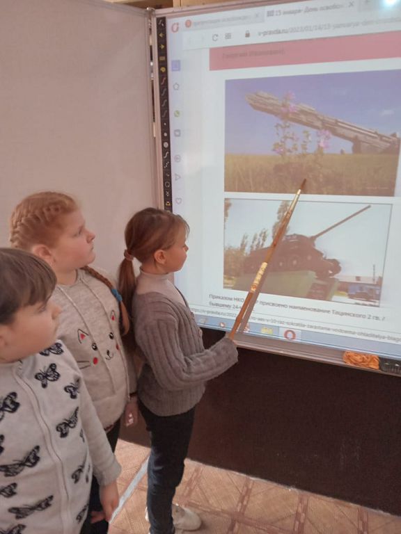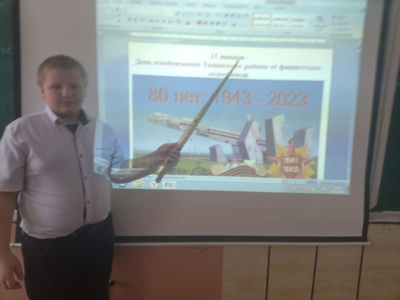 В школе прошли мероприятия, посвящённые 80-ой годовщине освобождения Тацинского района. Во время патриотического часа, библиотечного урока, урок мужества и презентации проектных краеведческих работ учащихся школьники узнали о том, какие части освобождали их малую родину, познакомились с биографиями некоторых освободителей, памятниками, посвященными воинам-освободителям.