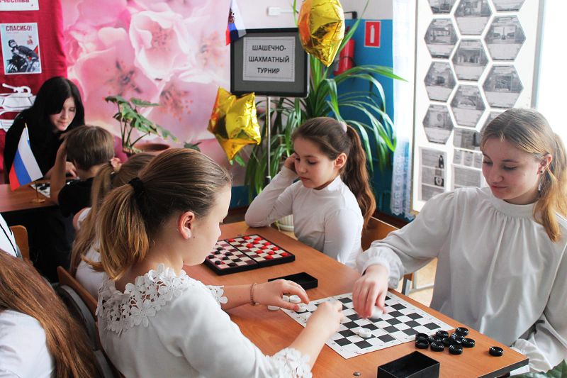 В рамках месячника спортивно массовой работы прошёл турнир по шашкам и шахматам среди учащихся школы. Все участники с большим азартом сражались в честном бою на шашечных и шахматных досках. Игроки удивили серьезным отношением к интеллектуальной игре, быстротой ума и умением просчитать ходы. Все храбро сражались за победу в турнире, но не всем сегодня повезло.