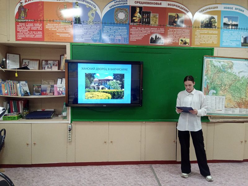 18 марта, в 11 годовщину воссоединение России и Крыма, в МБОУ Ковылкинской СОШ была проведена экскурсия по достопримечательностям и памятным местам Крымского полуострова. Учащиеся 8 и 9 классов, каждый выступил в роли экскурсовода, рассказывая одноклассникам о самом интересном, по его мнению объекте.