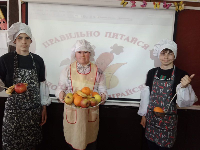 В нашей прошла акция здорового питания. Ребята по руководством классных руководителей составляли меню в пришкольный лагерь, отгадывали кроссворд разновидности напитков, собирали пословицы о питании, играли в игру Чудесный мешочек.