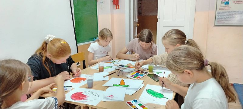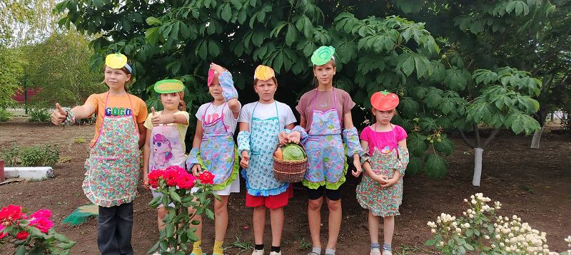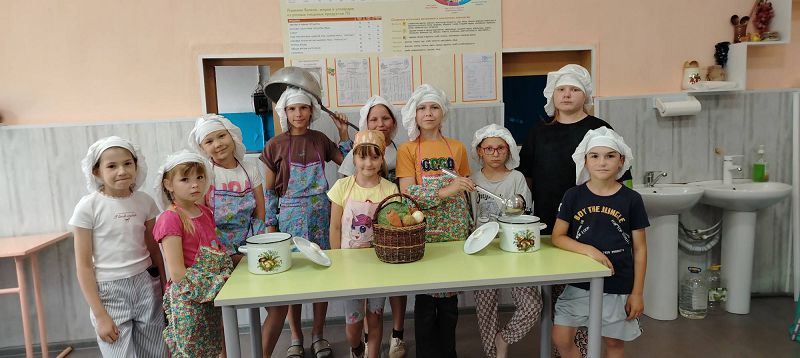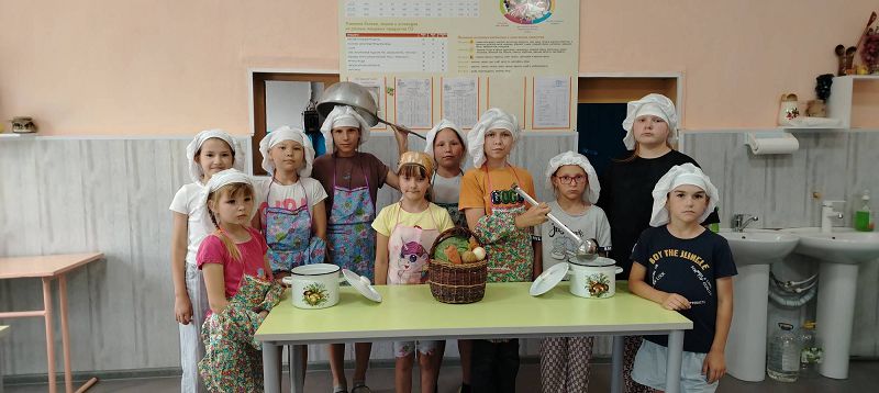Понедельник, девятый день лагерный смены, С воспитанниками лагеря утром прошла торжественная линейка с поднятием флага РФ, проведена утренняя зарядка. Был показан фильм о лагере Артек, которому сегодня 100 лет. Девиз сегодняшнего дня "Национальная кухня".Ребята на мастер - классе нарисовали и вырезали овощи,которые потом использовали в соревнованиях "Собери лукошко".,отгадывали загадки, собирали пословицы.