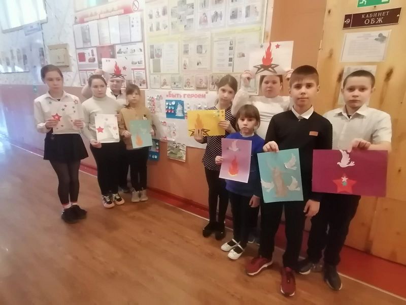 Учащиеся школы совместно с советником школы провели работу по созданию детских рисунков, аппликаций и коллажей «Быть героем!»,