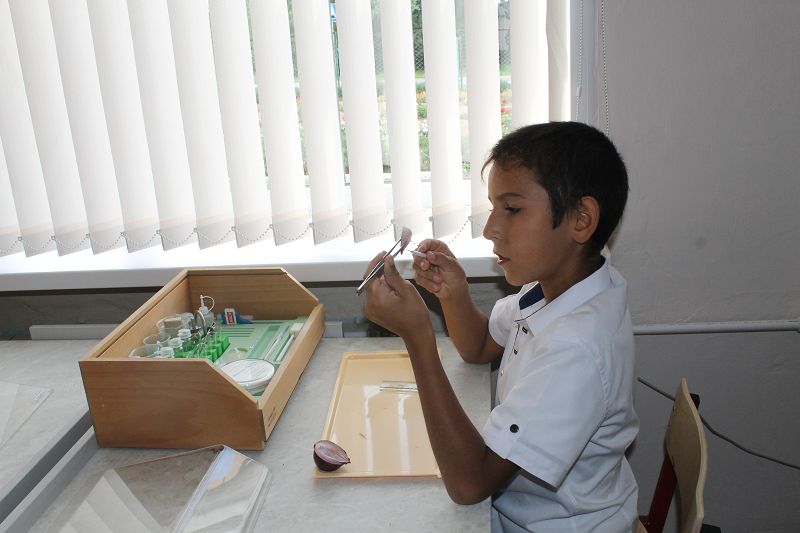 На занятиях Центра «Точка роста » учащиеся, используя микроскоп смогли рассмотреть строение кожицы лука. Вместе с учителем ребята приготовили по инструкции микроскоп, далее пинцетом отделили чешую луковицы и поместили на стеклышко.